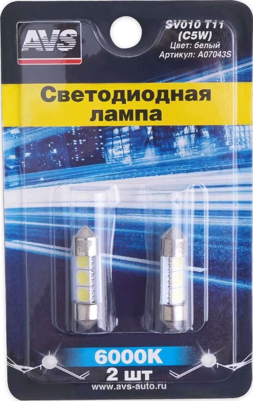 Комплект светодиодных ламп AVS SV014 T11 42мм (A80593S) 2 шт. - напряжение питания 12 В, цвет ... арт. 59995