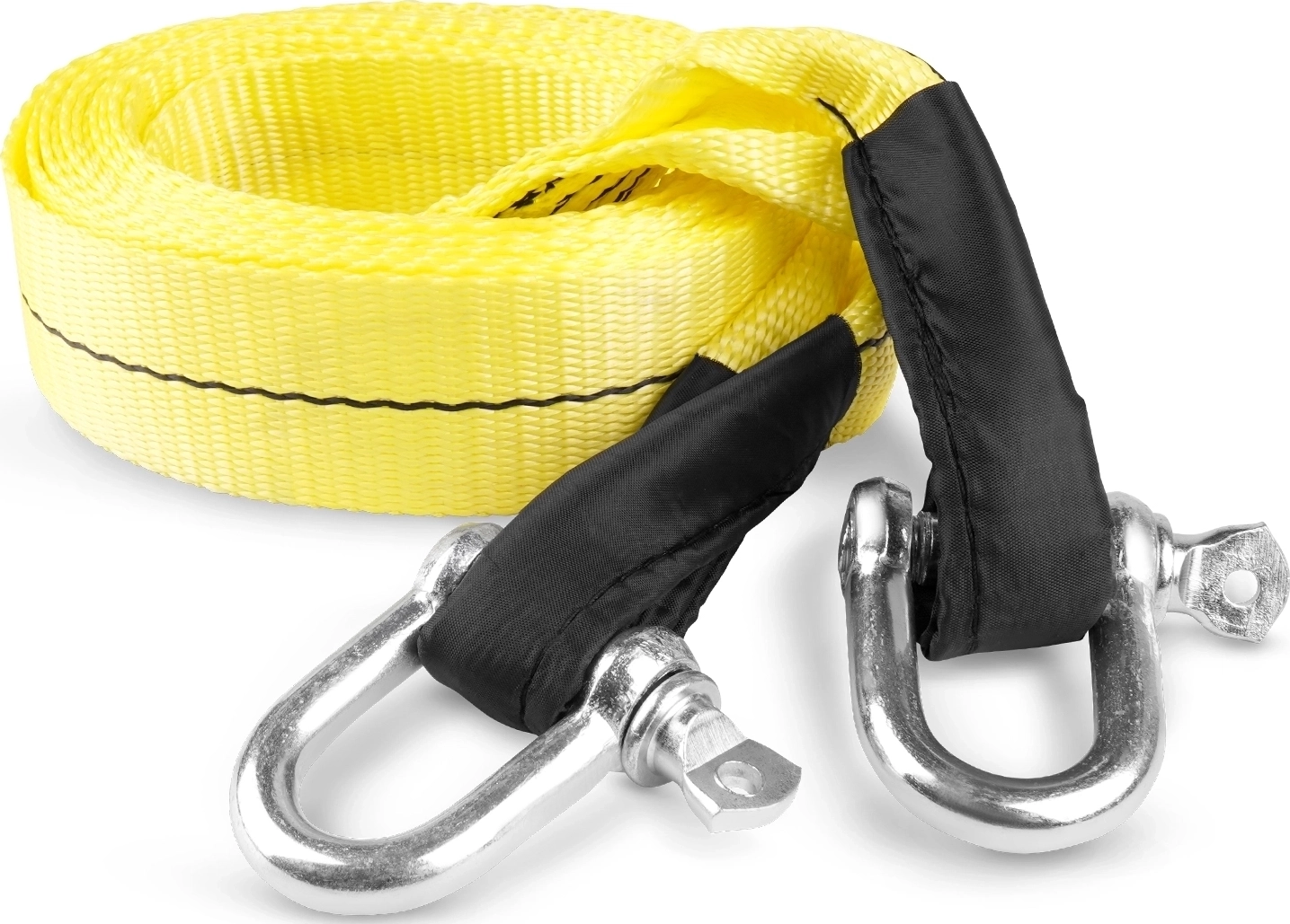 Трос буксировочный с предназначен для буксировки автомобилей и других транспортных средств. Максимальная масса буксируемого автомобиля: 7 т. Изготовлен из высокопрочного полиэстера. Отличается износостойкостью, морозоустойчивостью и стойкостью к агрессивным средам. Движение во время буксировки должно быть плавным, без резких рывков и торможений. Не является рывковым тросом! Следить, чтобы провисший трос не намотался на колеса. Нельзя применять для подъёма.