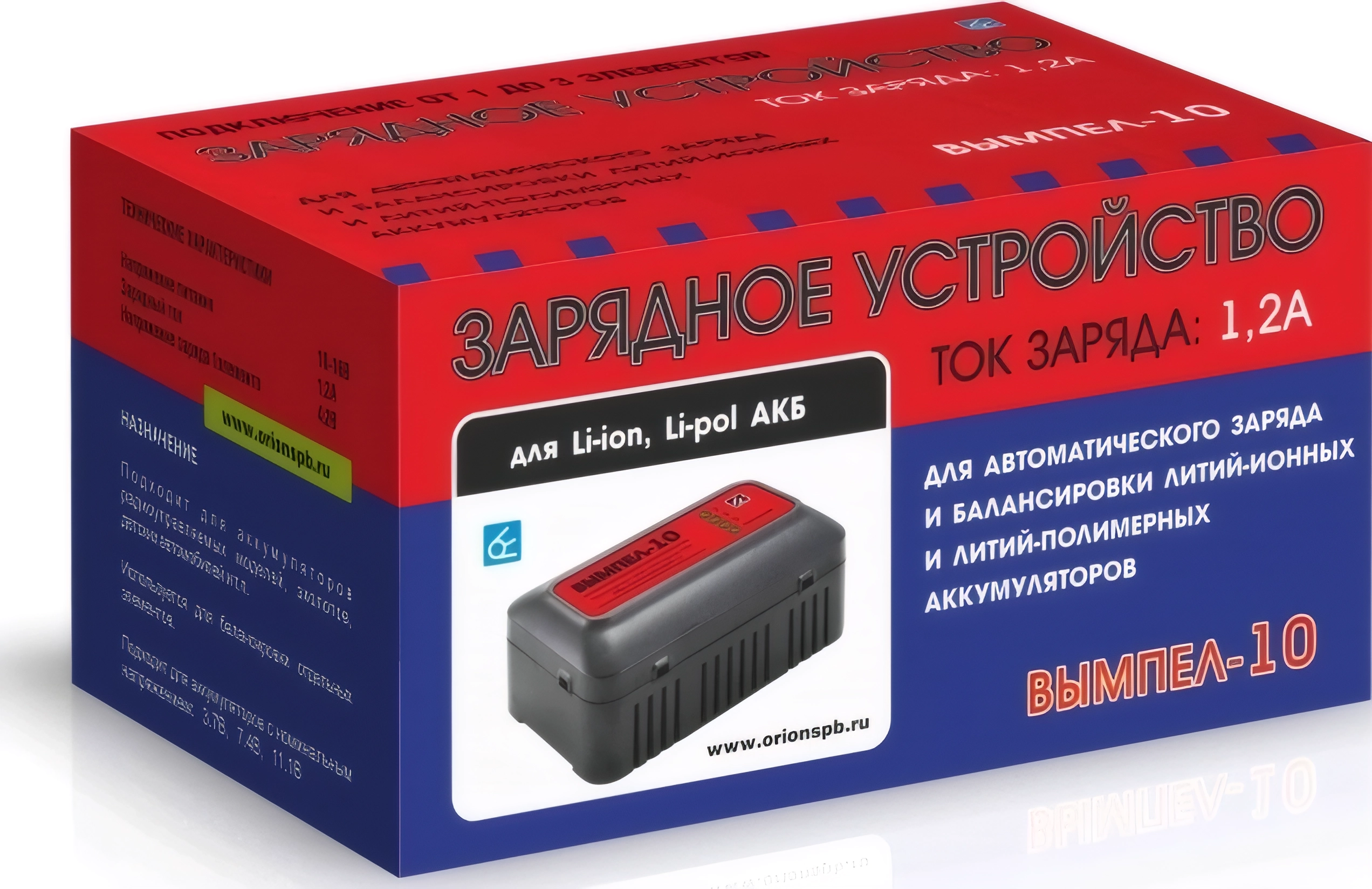 Зарядное устройство Вымпел 10 для литий-ионных (Li-ion) и литий-полимерных (Li-po) аккумуляторных батарей - полностью автоматический процесс заряда, возможность заряжать сразу 3 аккумуляторных батареи