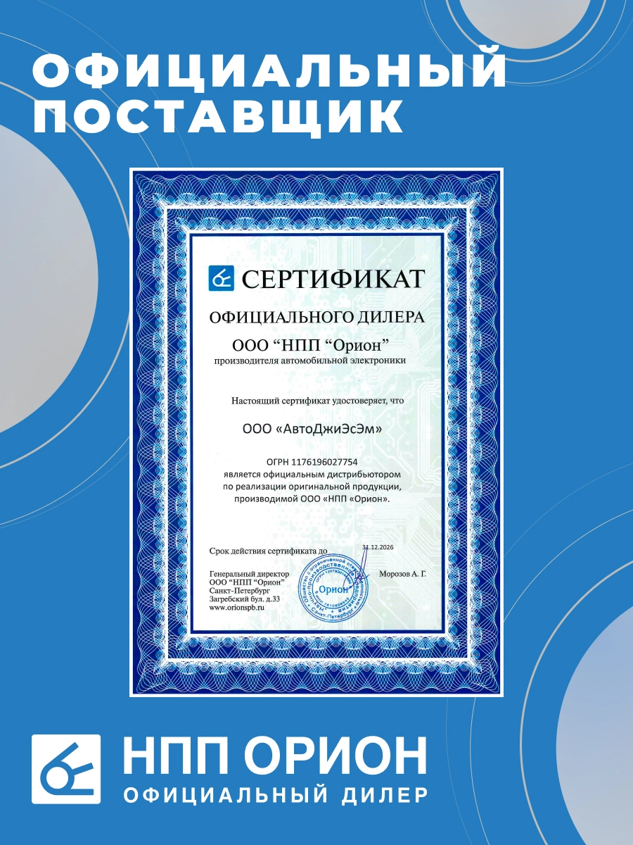 Мы работаем напрямую с НПП «ОРИОН СПБ», поэтому вся продукция под торговыми марками Орион и Вымпел является оригинальной. Данную информацию Вы можете подтвердить непосредственно у производителя: