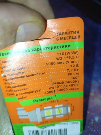 - Тип лампы: Т10 (W5W)