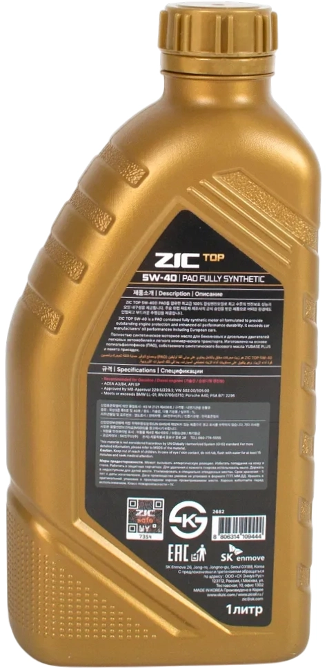Синтетическое моторное масло ZIC TOP 5W40 1л (132682)