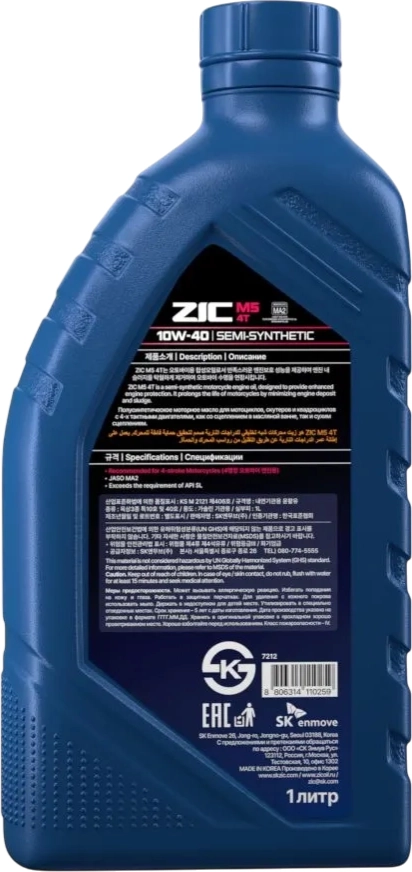 Полусинтетическое моторное масло для мотоциклов, скутеров и квадроциклов с 4-х тактными двигателями, как со сцеплением в масляной ванне, так и сухим сцеплением. ZIC M5 4T 10W-40 произведено с использованием собственного базового масла Yubase (группа III по API) и сбалансированного пакета присадок.