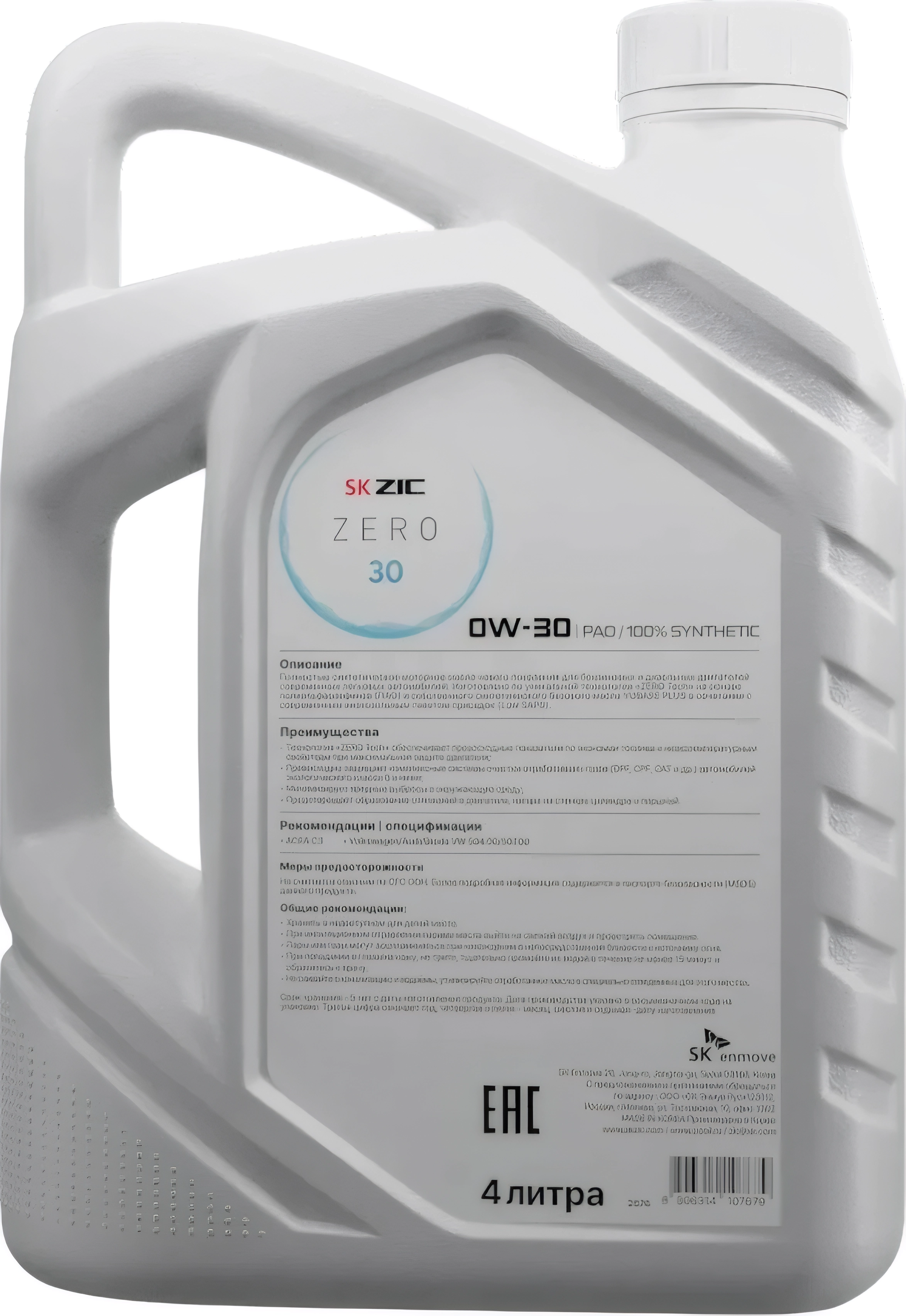 Синтетическое моторное масло ZIC ZERO 30 0W30 (4л) 162676