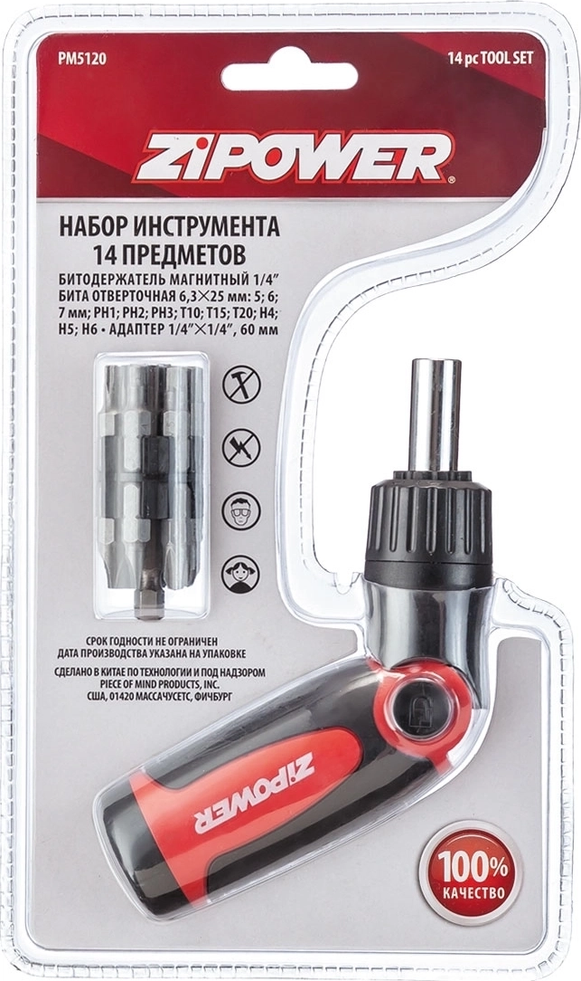 Набор бит с битодержателем ZiPOWER PM5120 14 предметов
